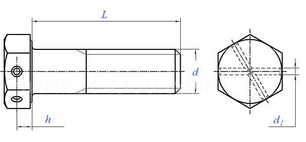 A hexagon bolt with a hole in the head is a type of fastener featuring a hexagonal head and an axial through-hole. The hole in the head is designed to allow flexible connectors such as ropes or lock pins to pass through, enabling additional fixing or suspension functions. The product is classified into precision grades A and B, with Grade A offering higher precision and being suitable for applications requiring strict dimensional tolerances, while Grade B is intended for general industrial use. The standard covers a nominal thread diameter range from 5 mm to 48 mm, including variants such as thin shank and fine thread types, providing a comprehensive fastening solution.